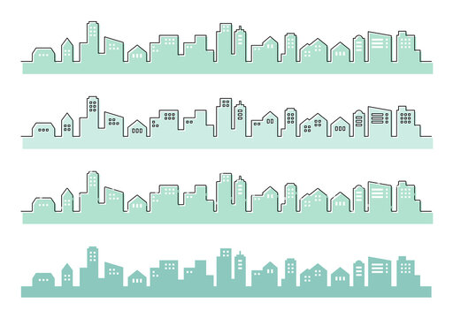 町並み シルエット 線画 フラット イメージ イラストセット