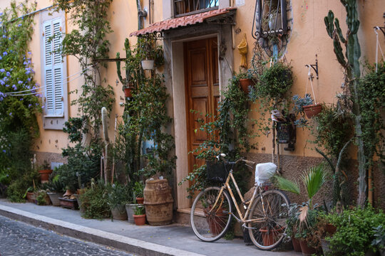 Civitavecchia, Italy.  Colorful pedestrian pavement along beach front . Civitavecchia is a sea port located 80 kilometres west-north-west of Rome.
