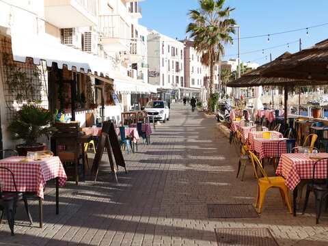 Promenade mit gemütlichen Restaurants in Civitavecchia Italien