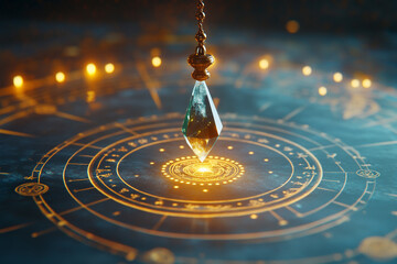 Pendulum casting light on mystical symbols in an enchanting ritual setting