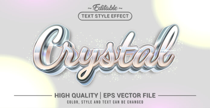 Editable text effect vector “Crystal”, featuring glossy, translucent, shimmering lettering inspired by crystal clarity, icy glow, and reflective gem-like highlights.