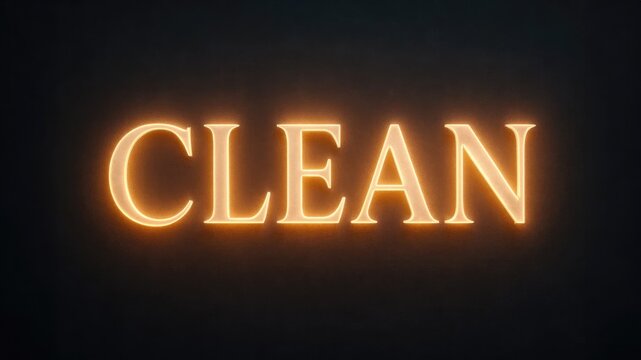 The word 'CLEAN' illuminated in a glowing orange font against a dark background. The design emphasizes clarity and simplicity.