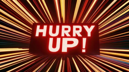 Bright Sign with Urgent Message to Hurry Up and Move Quickly in a Dynamic Motion Background