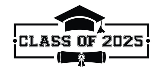 Graduation cap and diploma emblem celebrating the class of 2025 academic achievement and future success