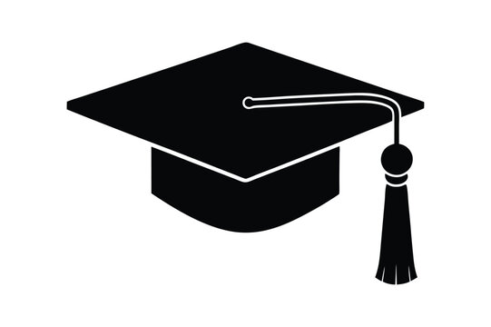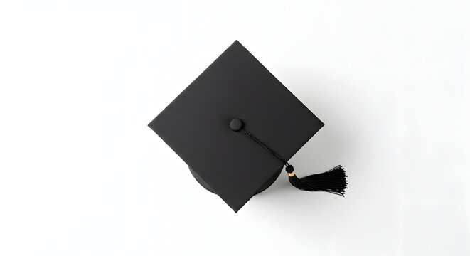 Classic graduation cap with tassel, centered against a white background, minimalist and detailed, high contrast