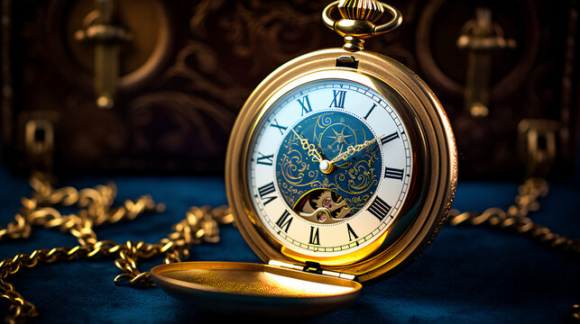 A classic watercolor illustration of a vintage pocket watch on a rustic parchment background, symbolizing time and nostalgia