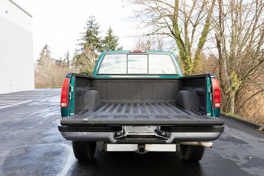 Empty Back Of Truck. Open Pickup Truck Tailgate Isolated Rear View