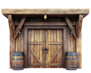 Illustration of a wooden gate entrance with an arch and fence, isolated on a white background