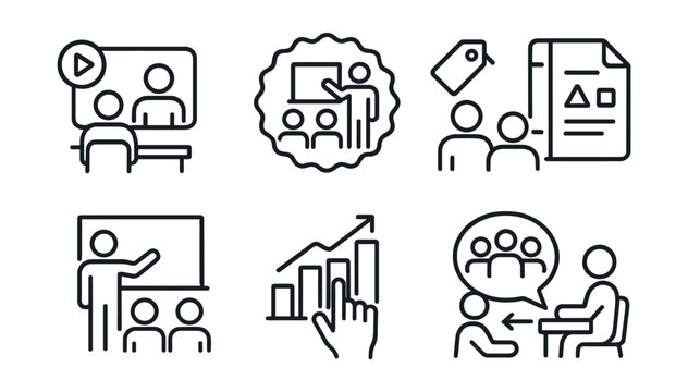 Silhouetted people in a meeting with a presenter at a whiteboard presentation silhouettes