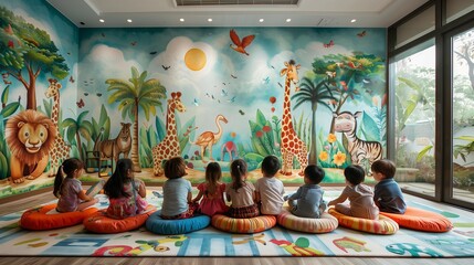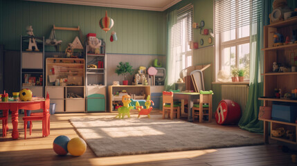 A colorful childrens classroom with educational posters and toys  AI generated illustration