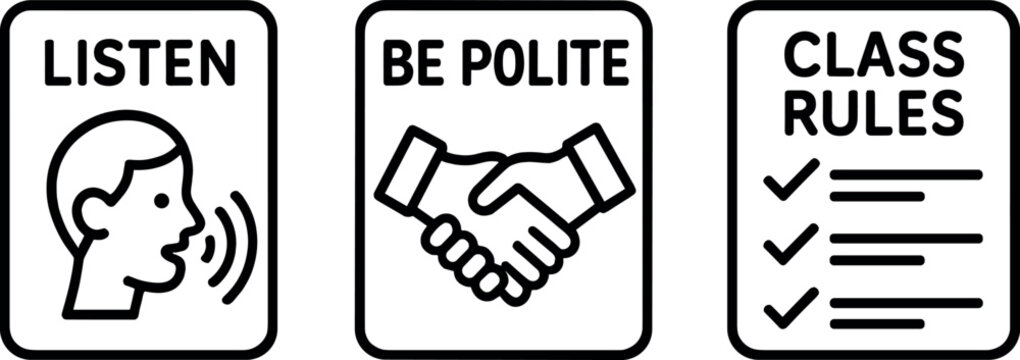 A classroom scene featuring a teacher standing in front of a whiteboard displaying '2025 Education Goals', addressing attentive students seated at desks.