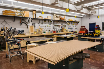 Industrial arts shop in a recently renovated and upgraded rural high school; Namao, Alberta, Canada