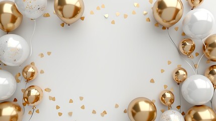 Minimalistic elegant gold and white balloons on both sides creating a festive celebratory frame with a clean center for luxurious events parties or occasions that call for style and sophistication