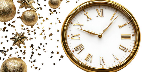 New Year Countdown Clock with Golden Design Isolated on Transparent Background