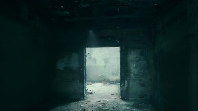Abandoned Dark Corridor with Dim Natural Light from Outside