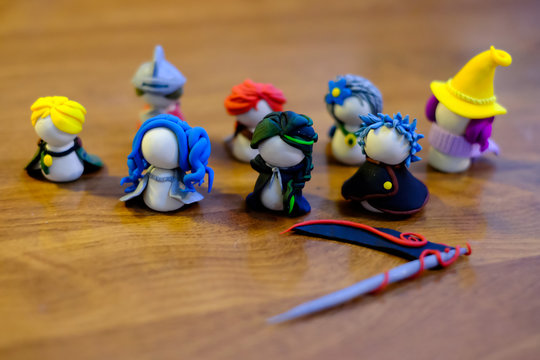 Small figurines made of clay by a child