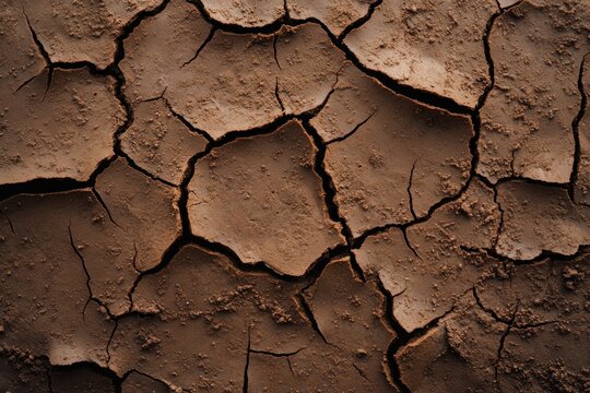 Dry tones, deep crevices, cracked earth texture close-up, high-resolution desert background.