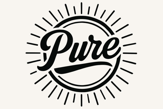 Retro Poster Calligraphy. Pure, retro poster calligraphy, clean bold style, surrounded by rays, circular frame composition, clean white background, vector