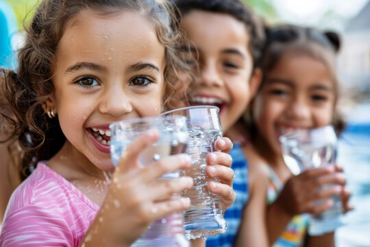 Three kids sipping water from cups