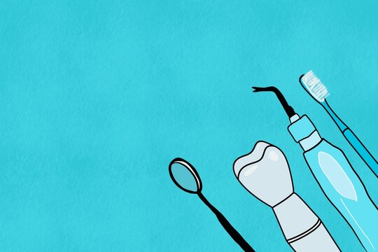 Dental care tools on a turquoise background