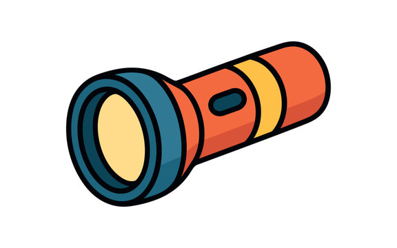 Flat vector illustration of colorful flashlight with bold details rounded form clean minimal linework
