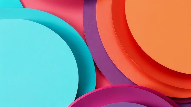 Colorful layered circular shapes forming abstract geometric composition, smooth modern design with vibrant tones, depth, and clean visual balance