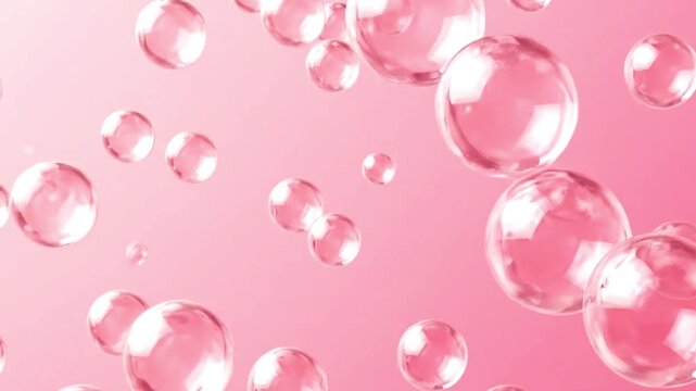 A group of transparent pinktinted spheres of various sizes float against a gradient pink background