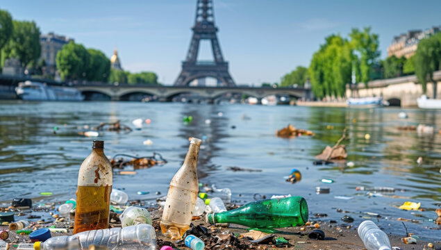 Illustration of sewage pollution in the Seine river in Paris. Water quality fear. Generated AI. Not the actual event