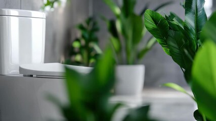 Modern toilet models in plumbing department showroom of construction hypermarket, white ceramic surfaces in premium products area