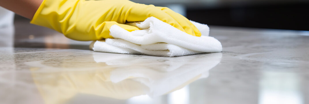 A worker is depicted meticulously cleaning an industrial surface while wearing gloves. The focus on hands in action highlights the importance of cleanliness and safety in industry.