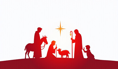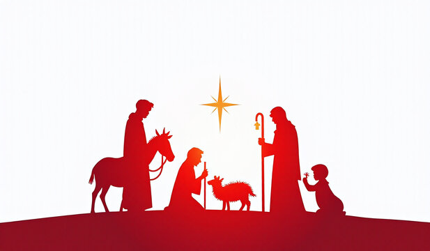 red silhouettes nativity figures white background make striking christmas card illustration vector format