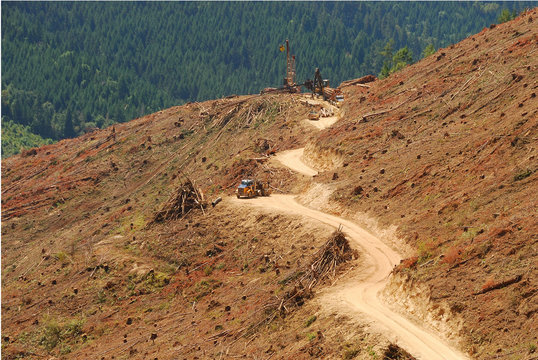 View of a clearcut area in a large logging operation