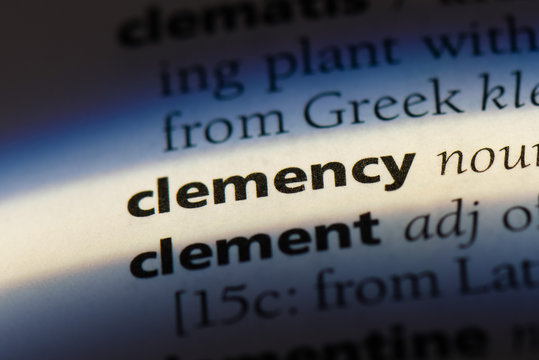 executive clemency word or concept represented by black and white letter cubes on a grey horizon background stretching to infinity