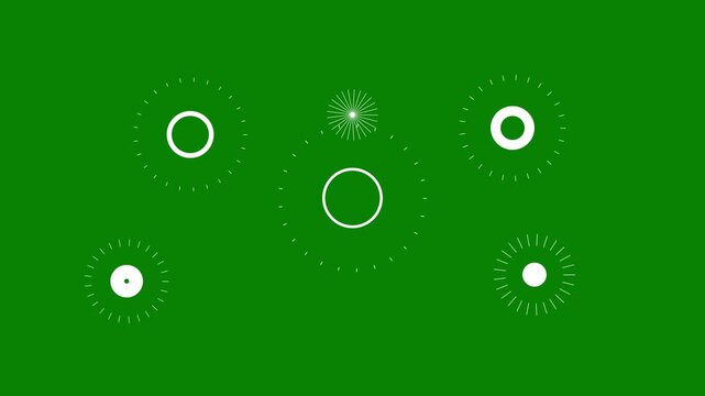 Motion graphic fireworks line burst animation, glowing ellipse blast with shiny pop-up explosion effect, circle bursting firework motion graphics, festival cut-out animation on green screen background
