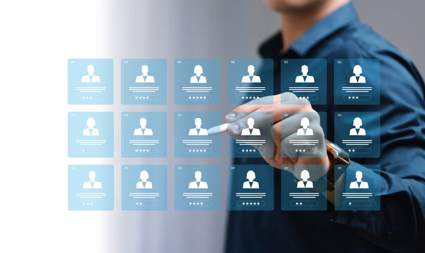 Target customer, buyer persona, customer behavior concept. Businessman shows target customer on virtual screen. Marketing plan and strategies. Personalization marketing, customer-centric strategies.
