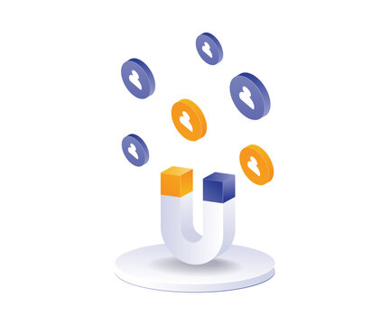hand holding magnet and tries to appeal clients, customers. Customer retention concept. vector illustration.