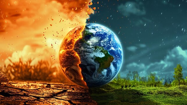 The earth in a frying pan, symbolizing the pressing issues of climate change and global warming, highlighting the need for sustainable practices and environmental awareness