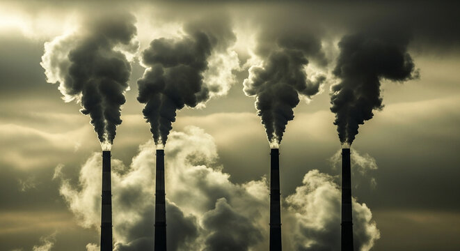 Pollution from industrial chimneys causing global warming and climate change emissions smog