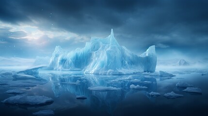 Surreal melting / crying glacier, illustration depicting climate change and global warming impact on environment.