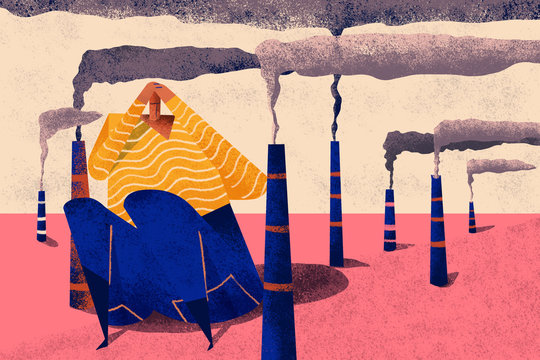 Eco-anxiety and eco-depression caused by global warming. Colorful concept.