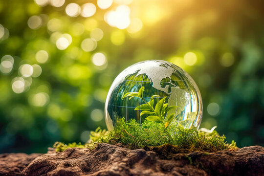 Green Business Sustainble Innovation concept. The image promotes environmental sustainability through eco-friendly practices, symbolizing a green and interconnected planet. ESG. CSR. Co2. Net zero.