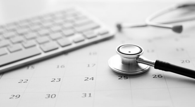 Annual checkup concept. Stethoscope on the calendar with soft-focus and over light in the background