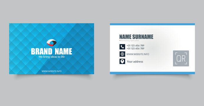 Modern Minimalist Business Card Template. Includes front and back sides with editable name, title, contact details, website.
