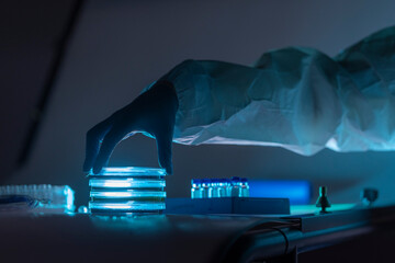 Lab researcher working with petri dishes