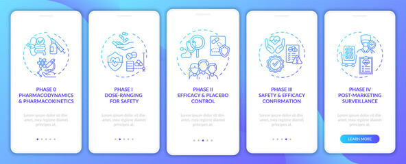Researching phases onboarding mobile app page screen with concepts. Placebo control, surveillance walkthrough 5 steps graphic instructions. UI, UX, GUI vector template with linear color illustrations