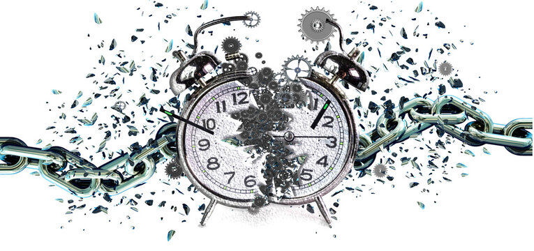 time clock breaking in  2 two flying pieces bipolar time pass memory loss future new era feelings  gears free freedom psychology war