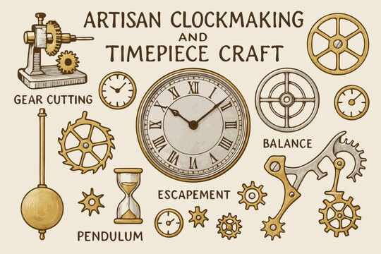 Artisan Clockmaking and Timepiece Craft Elements Vector Illustration