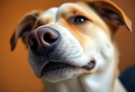 Close up of a red cocker spaniel dog with golden ears, nose raised high to sniff the air. This adorable red cocker spaniel enjoys exploring outdoors in a field on a cloudy day.