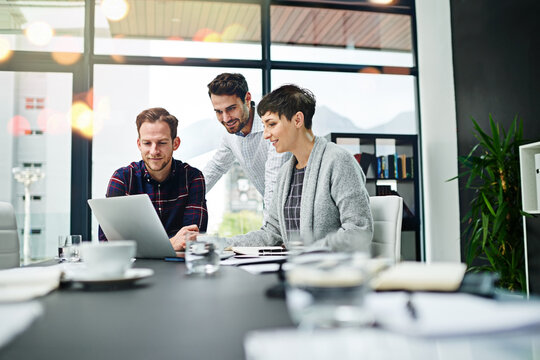 Theyre so close to their goal. Cropped shot of a group of businesspeople working together on a laptop in a modern office.