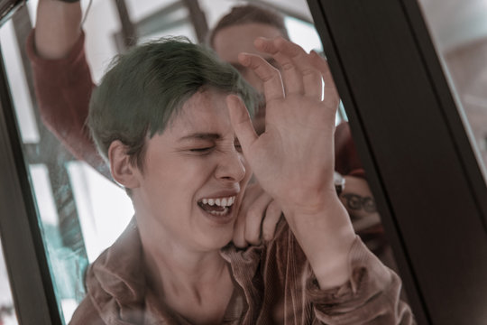 Stressed Woman Receiving a Rejection Message Vector Cartoon. Stressed lady getting a block notification of online rejection